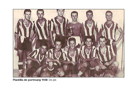 En 1928 se construyo otro campo al oeste de lo que es hoy la Plaza de España, era mucho mejor, tanto por su construcción, como por su situación, cedido por su gratuitamente por su propietario D. José Roselló Cardona (Musona). En este año se organizaron campeonatos entre todos los clubs de la isla y el Portmnany hizo un buen papel en casi todas sus actuaciones. Comenzó así, una era de esplendor para el club, pues cada día tenía mas aficionados y además del fútbol organizaba conferencias, comedias, bailes, tenía una buena biblioteca … Esto duró hasta el año 1936 en el que estalló la guerra civil. En esta guerra el Portmany lo perdió todo, el local, la biblioteca, los muebles, etc… Durante años el club durmió soñando, pero con el tiempo volvería por sus fueros con una afición y fuerza arrolladora. REVISTA SOCIAL . Diciembre 1978 – Nº 0 (Ejemplar Gratuito)